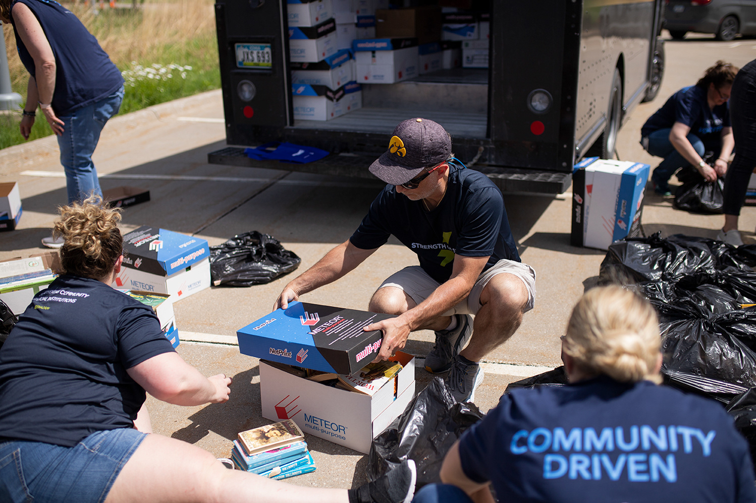 Photos for Stuff the Bus. A United Way program that works with a company to sponsor a book drive. The books are then collected and distributed to early childcare centers and elementary schools to help kids get an early start on reading. This event brings in over 30,000 books.